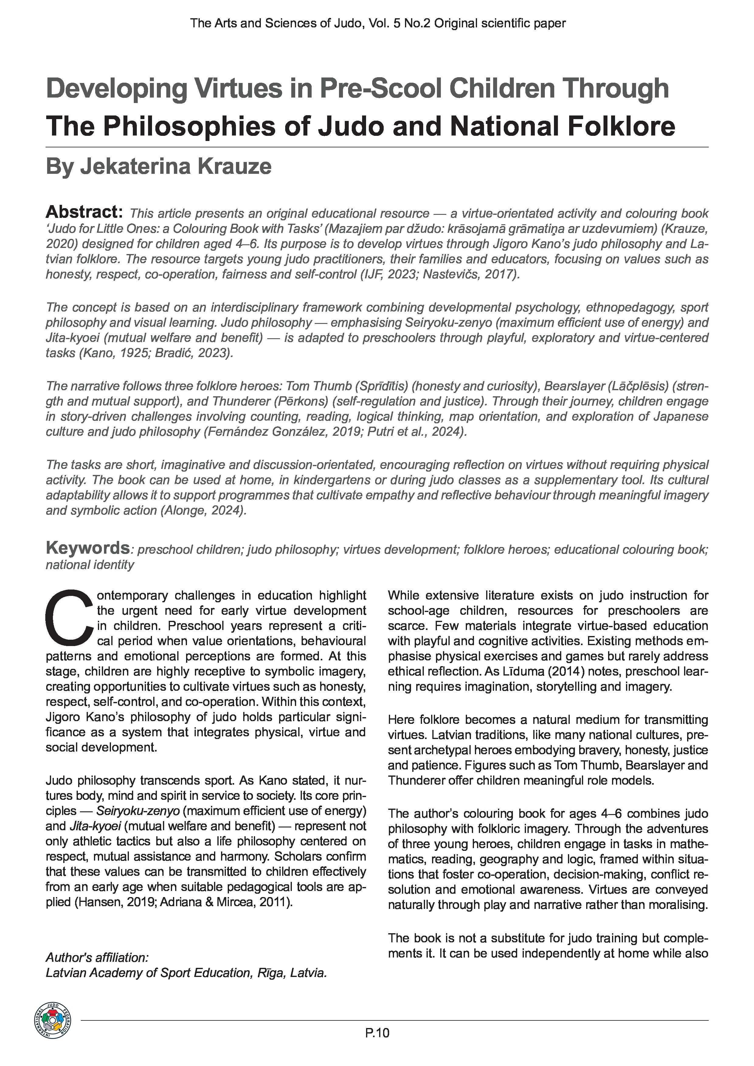 Table of content Analysis of Kata Scoring and Performance Patterns at the Elite Level in Judo Developing Virtues in Pre-Scool Children Through the Philosophies of Judo and National Folklore Analysis of Work Performance of International Referees in Judo The Biomechanics of Tori’s Movement During Competition Sutemi, Makikomi and Tai Atari Free to Perform: A New Paradigm to Optimise Sport Performance The Influence of Refereeing Rules, Techniques and Tactics on Judo Fighting Styles: A Narrative Review Speciality Judo Training of Deaf Judoka (Kata) From Kata to Chaos: The Rise of Randori in Kitō-ryū Jūjutsu and Beyond